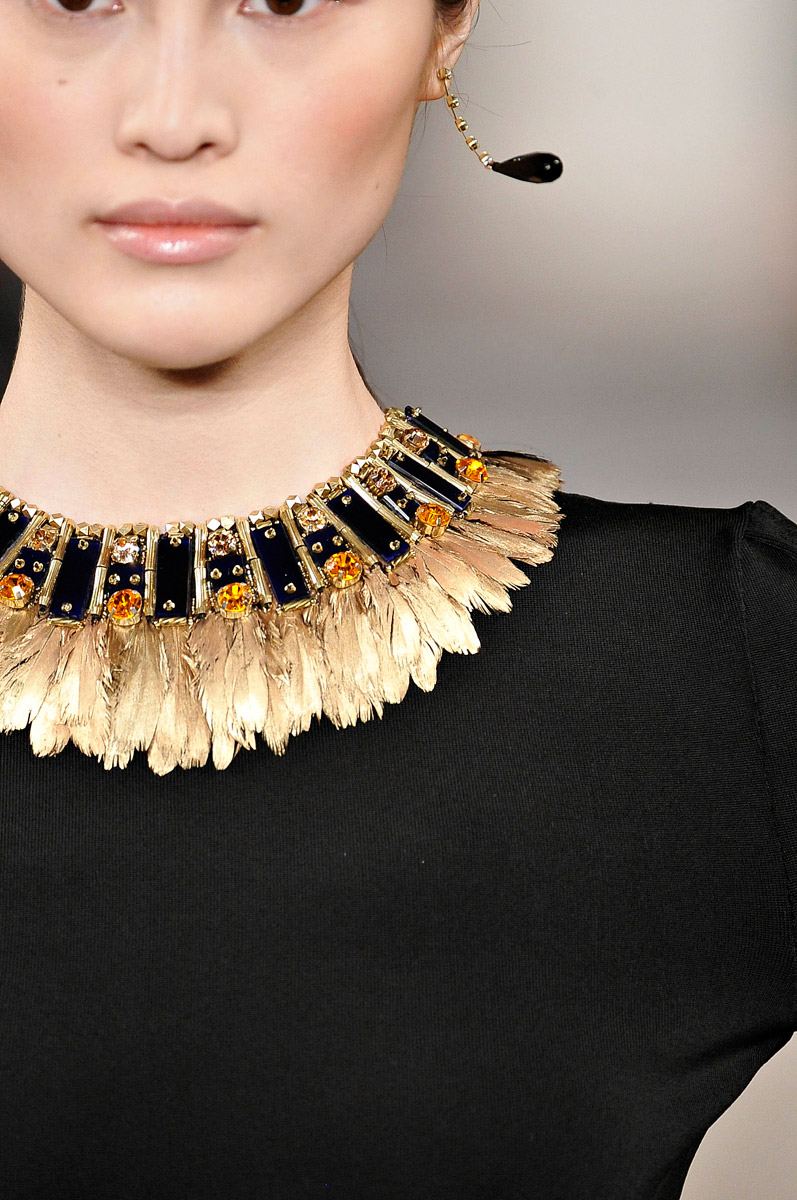The Roaring Twenties wee an obvious influence on a beaded flapper number and black column dresses picked out in gold and platinum Art Deco embroideries. Nonetheless, the evening looks as a whole felt modern.